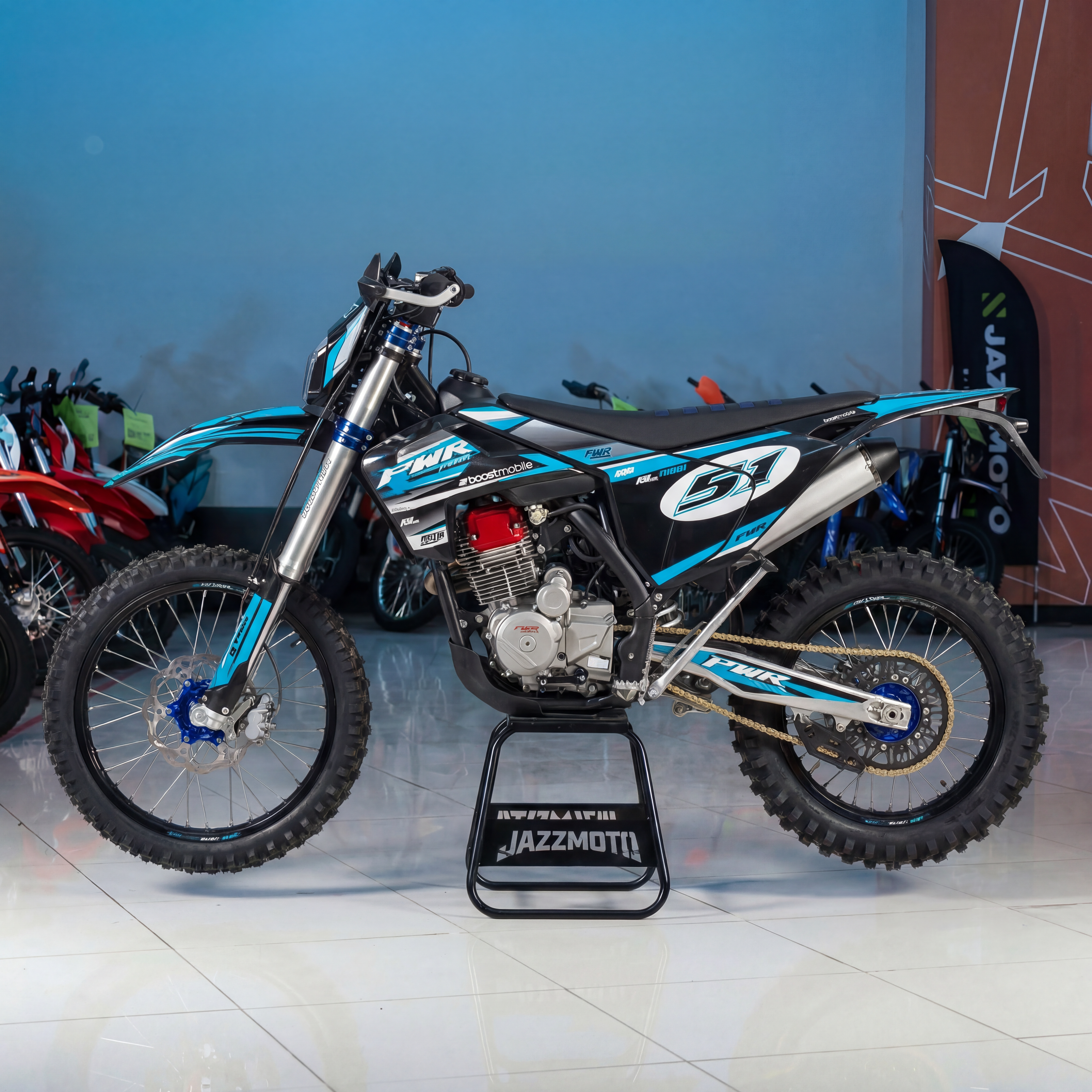 PWR FS300 NC — это флагманская модель для тех, кто ценит мощность, легкий вес и исключительную управляемость. Полностью настраиваемая подвеска GPX, прочный облегченный маятник из алюминиевого сплава и большое количество алюминиевых деталей делают этот кроссовый мотоцикл удачным выбором для мотокросса, бездорожья и продолжительной эксплуатации.